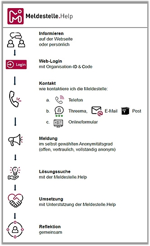 Die Meldestelle.Help ist eine unabhängige, neutrale und anonyme Anlaufstelle für konstruktive Lösungen. Wir nehmen deine Meldung telefonisch, online oder per Post unter Wahrung der von dir definierten Vertraulichkeit entgegen. Wir erfassen den Sachverhalt sorgfältig, klären bei Bedarf offene Fragen in einem persönlichen Gespräch.